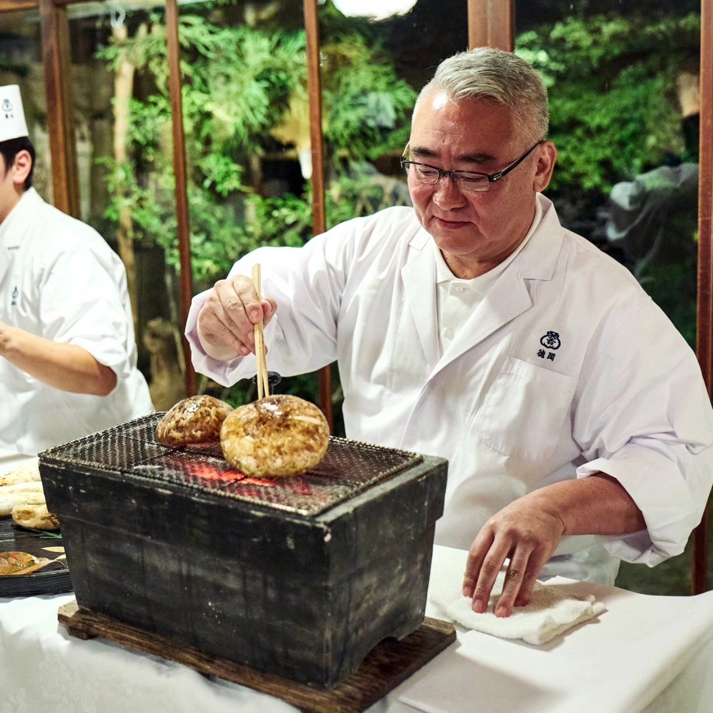 また、「IWA 5 Reserves」に合わせ松茸を焼き始めると、「香りだけでお酒が進む」と召し上がる前からペアリングを楽しむゲストが続出!意外にも女性のお客様が多かった食事会でしたが、皆様しっかり味わわれた様で、用意した25本のボトルは全て空となりました。つまりお一人1本以上、飲まれたと言う事。私もしっかり堪能させて頂きました。