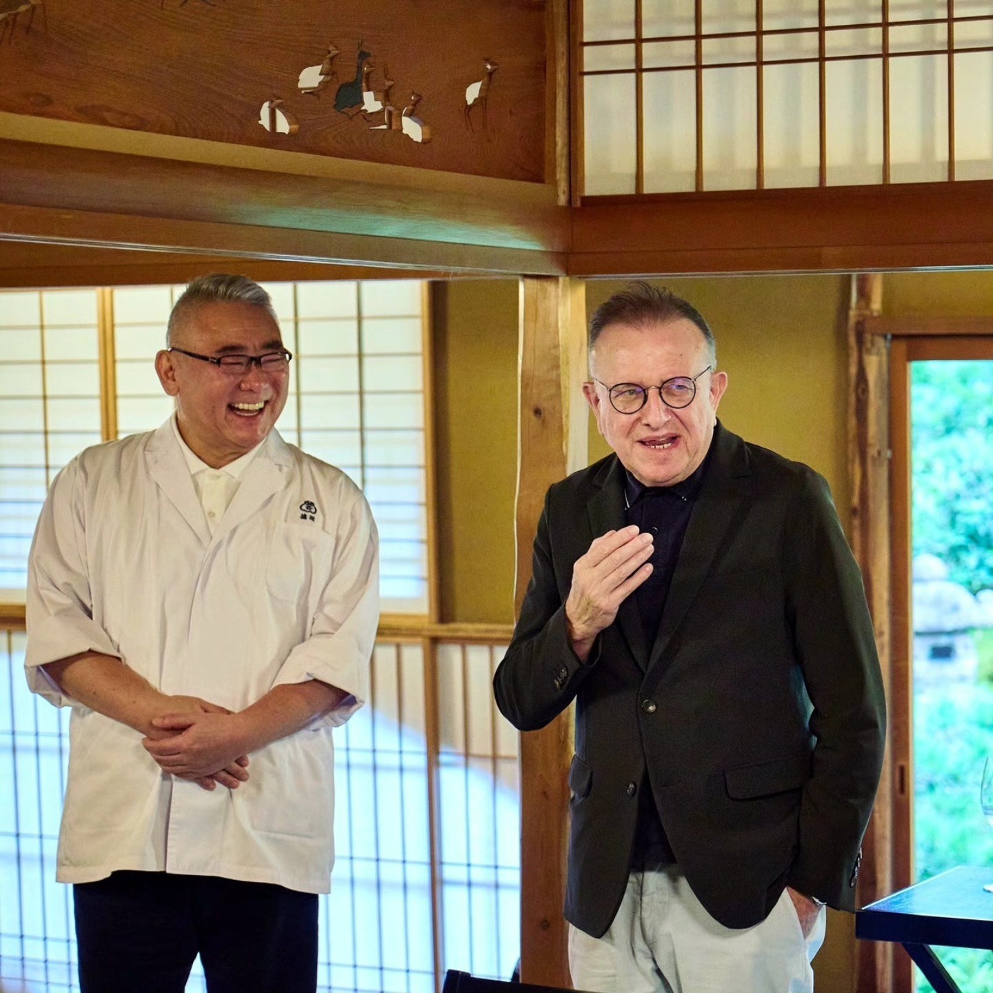 2023年の秋に、嵐山まで挨拶に来てくれて、世界マーケットでの食の嗜好の変化や動向、キャビアと日本酒は、相当相性が良い事など、意気投合して、2024年の秋に1回目のコラボ食事会が開催されました。そして更に、洗練された「IWA 5」が仕上がったと言うので、先日10月7日、今年のお酒のお披露目となる、食事会を開催しました。