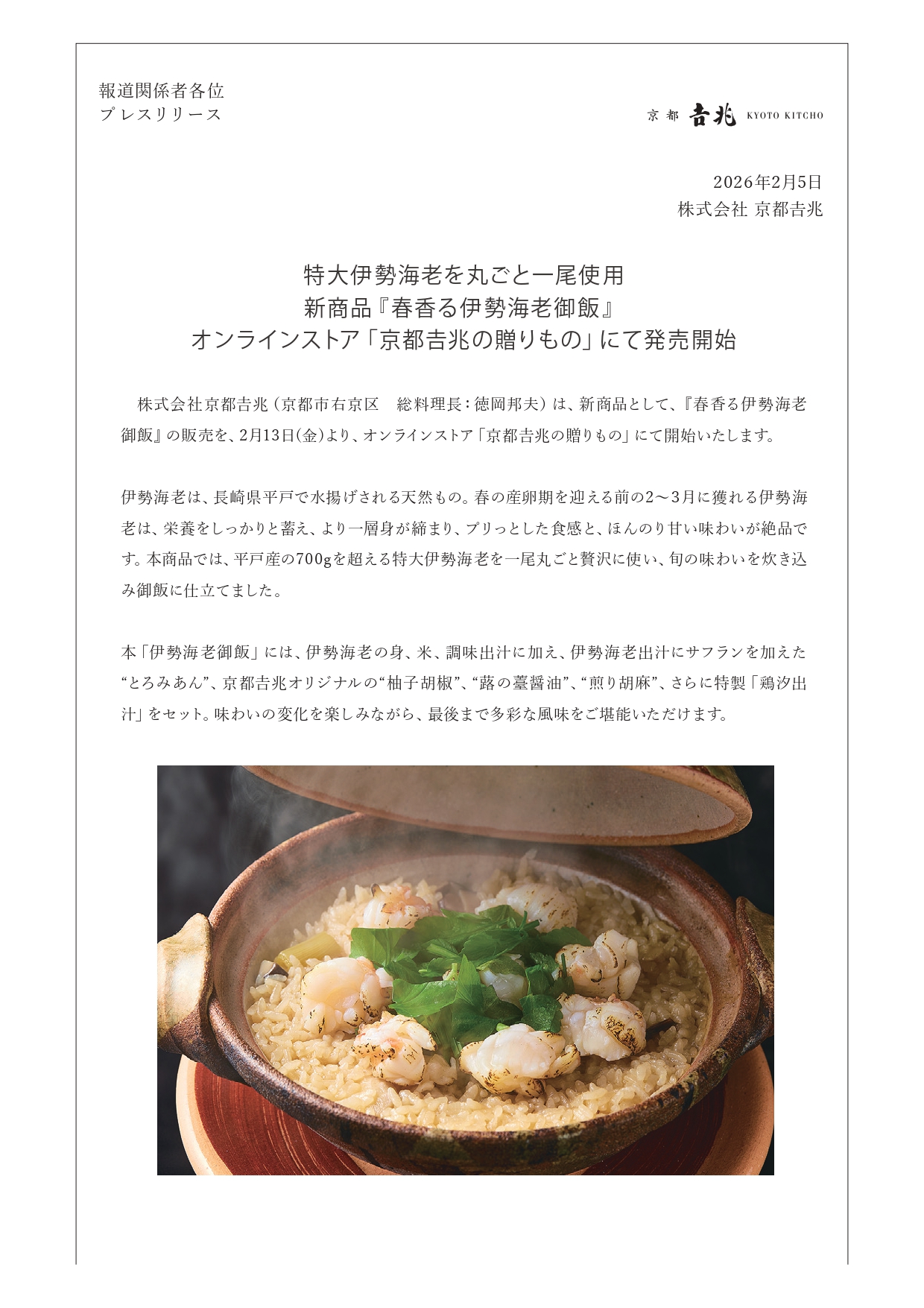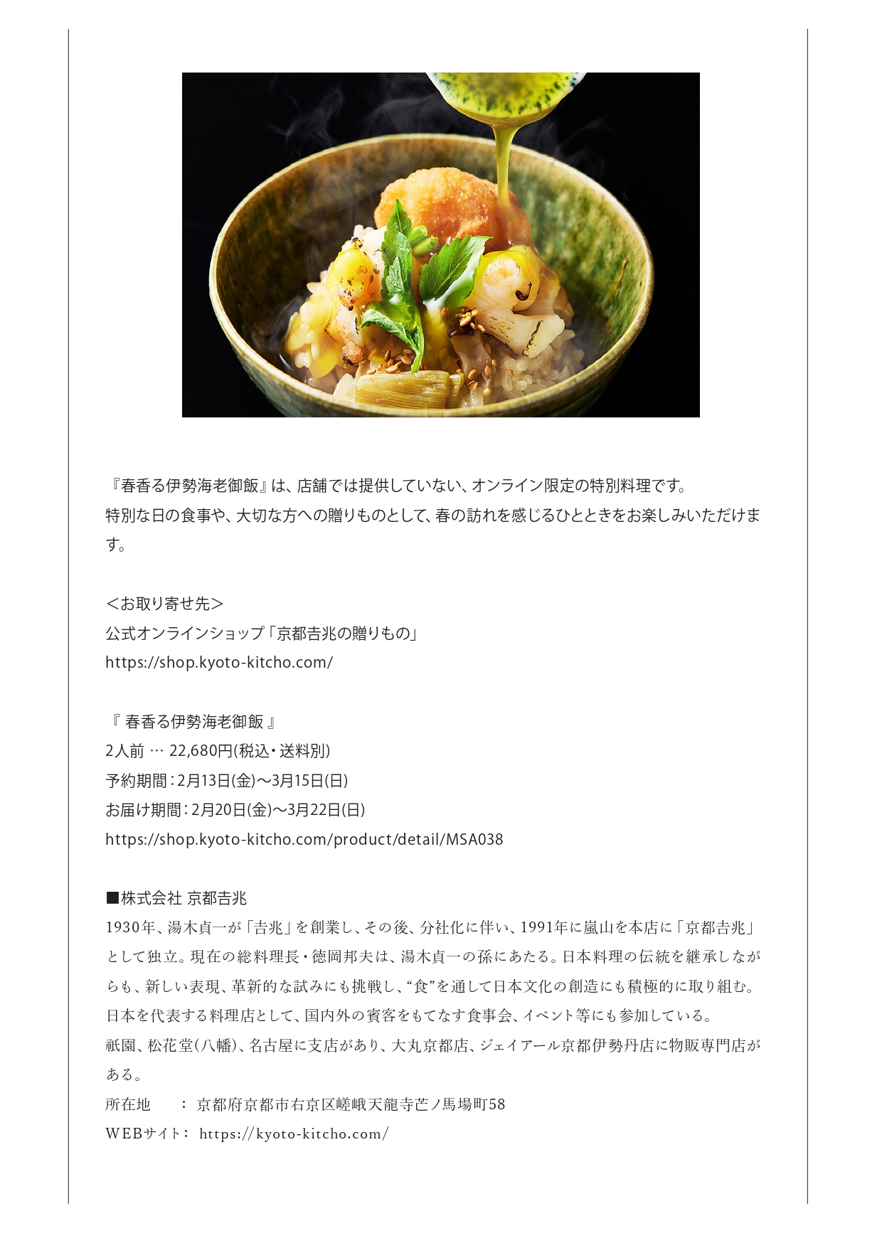 PR|オンラインストア新商品『春香る伊勢海老御飯』のご案内